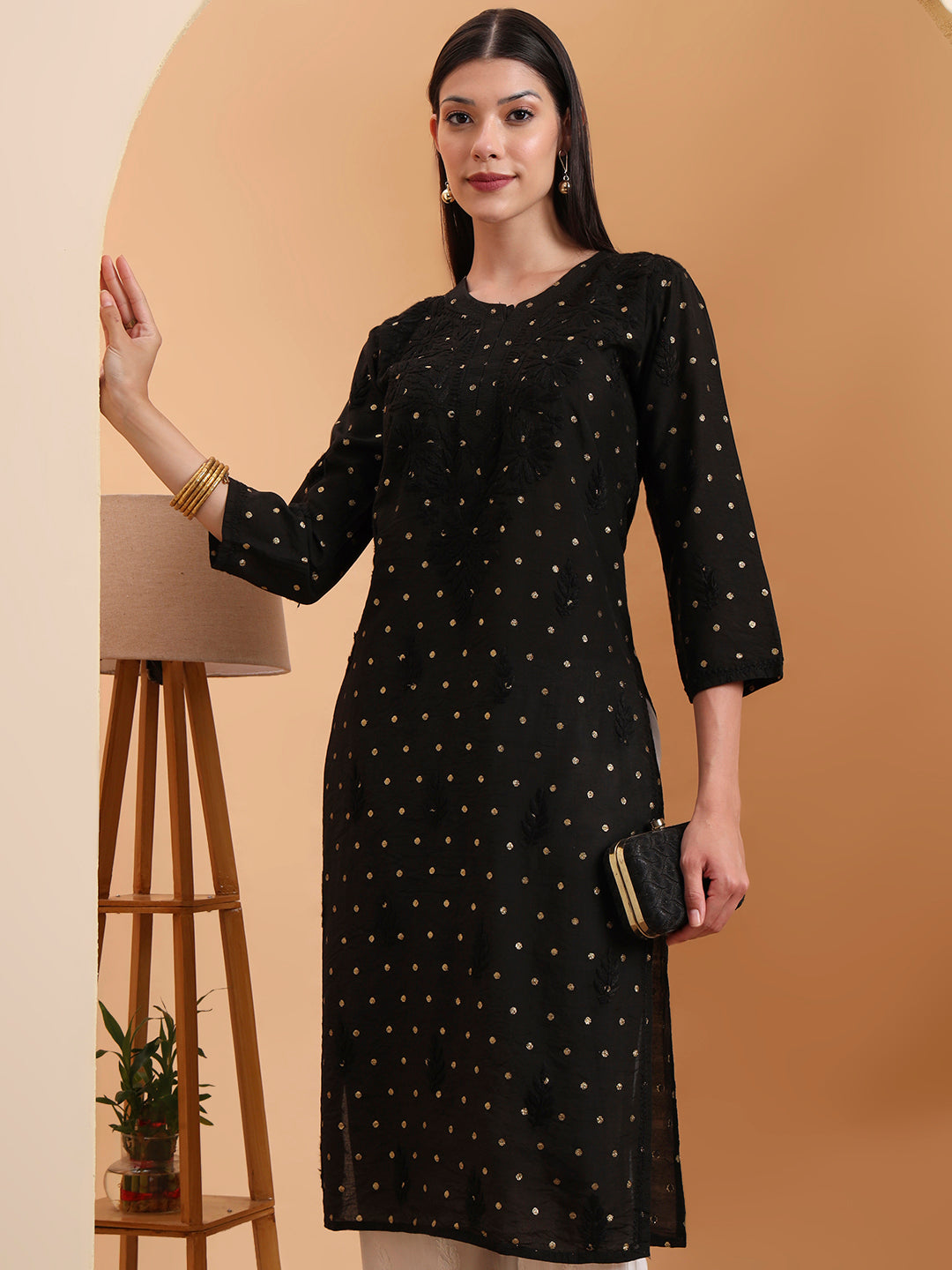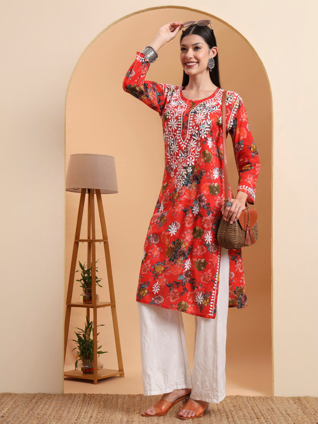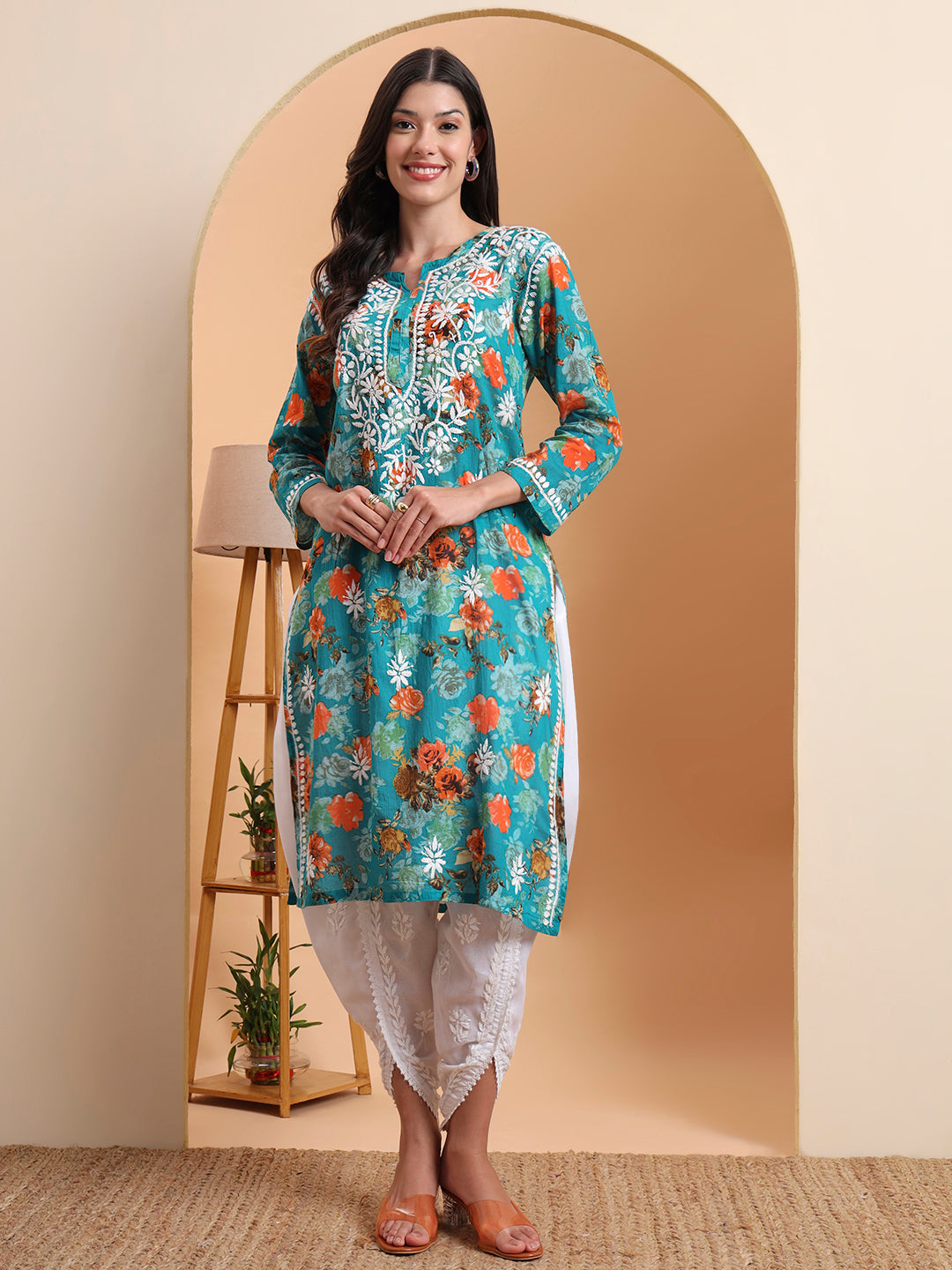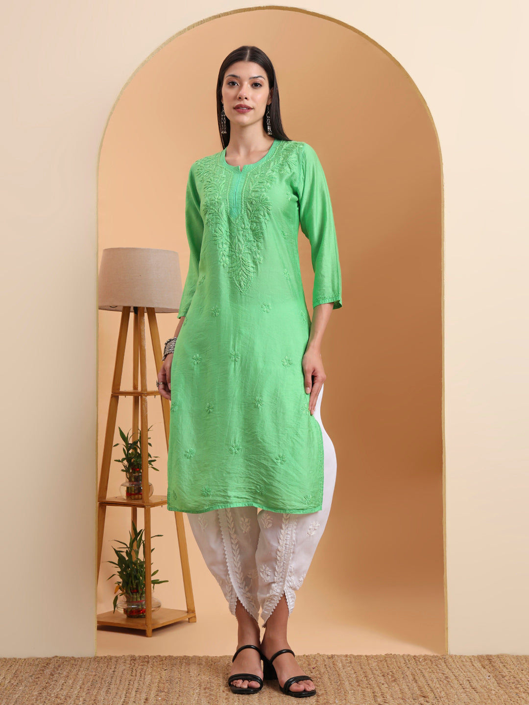 Ethnic Motifs Hand Embroidered Modal Lucknowi Chikankari Kurta