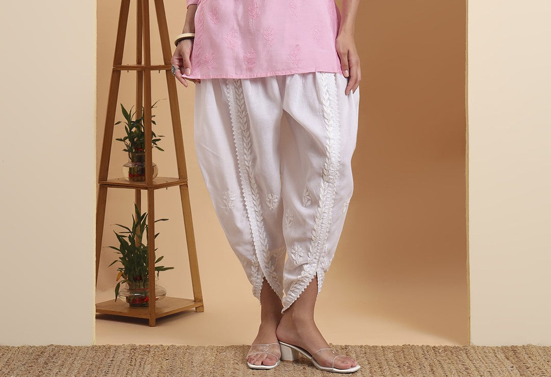 Elenora Women's White Cotton Chikankari Embroidered Dhoti Pants – Ethnic Bottom Wear