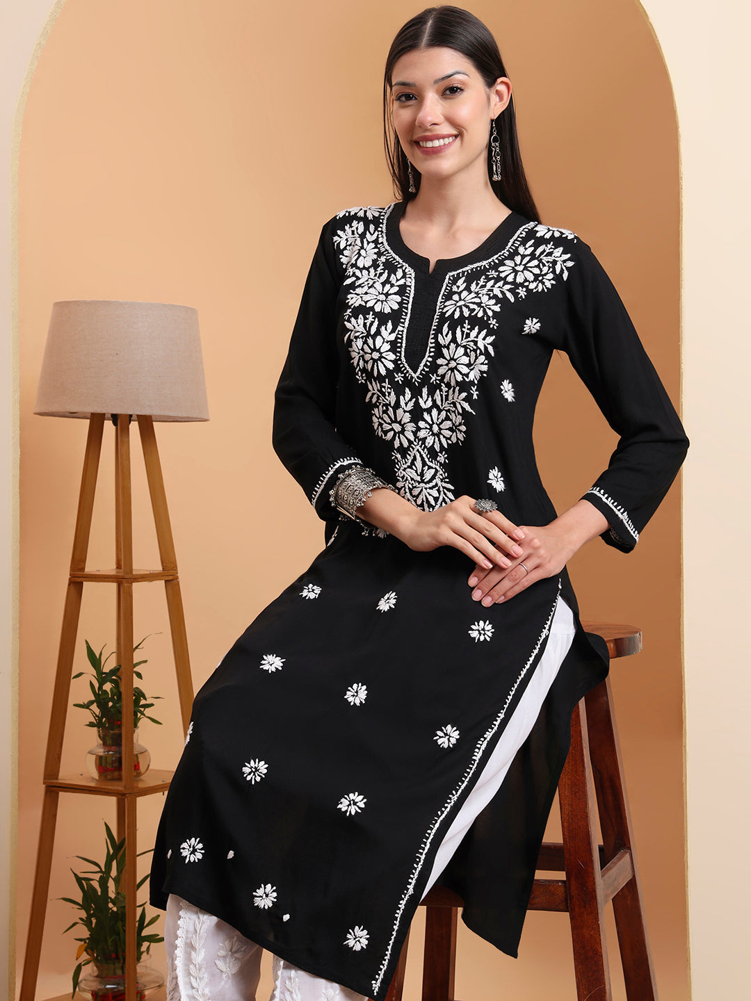 Ethnic Motifs Hand Embroidered Modal Lucknowi Chikankari Kurta